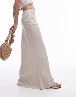 Topshop - Jupe mi-longue en lin coupée en bais - Naturel
