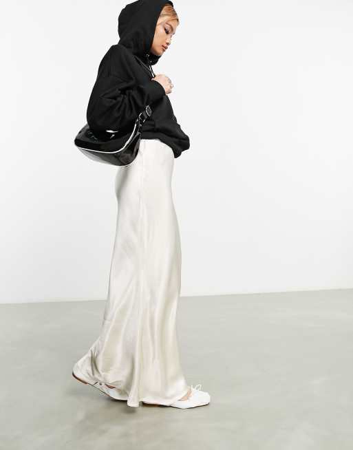 Topshop - Jupe mi-longue satinée coupée en biais - Blanc cassé
