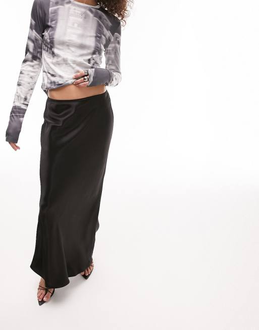Topshop - Jupe mi-longue satinée coupée en biais - Noir