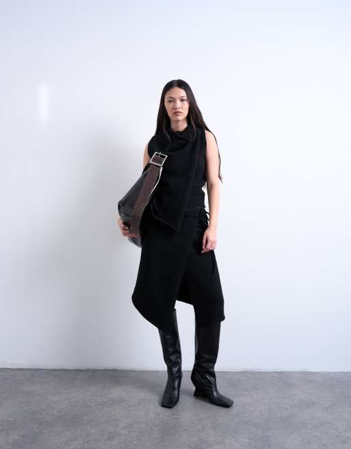 Topshop - Jupe portefeuille asymétrique d'ensemble en maille - Noir