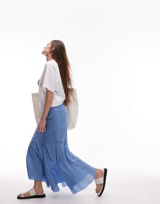 Topshop - Jupe rayée à découpes - Bleu délavé