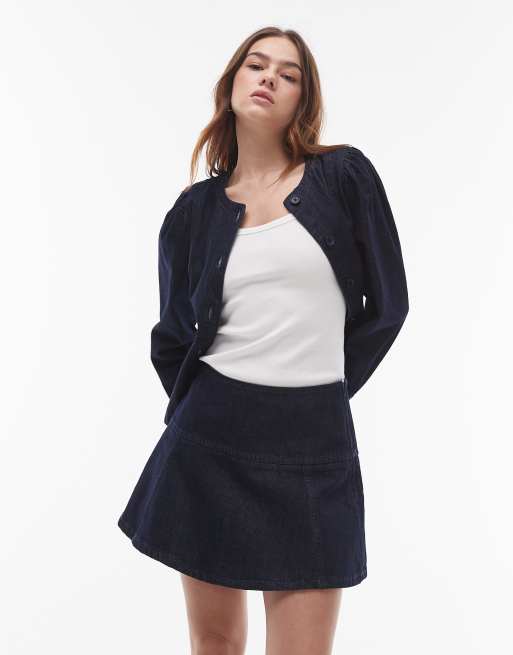 Topshop - Jupe virevoltante en denim - Indigo