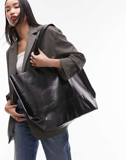 Topshop - Lucy - Tote bag oversize en cuir - Noir