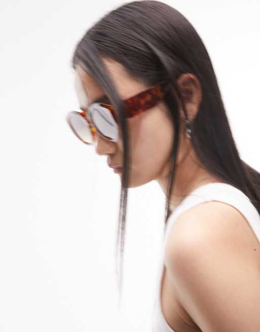 Topshop - Lunettes de soleil rondes à monture oversize - Écaille de tortue