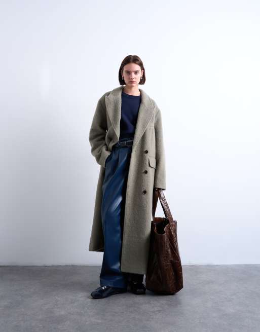 Topshop - Manteau brossé à 3 boutons en laine - Sauge