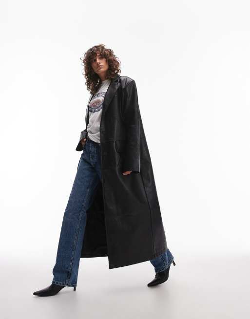 Topshop - Manteau long en similicuir - Noir