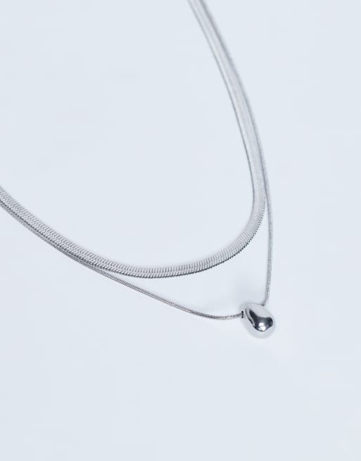 Topshop - Mila - Lot de 2 colliers chaîne serpent en acier inoxydable résistant à l'eau - Argenté