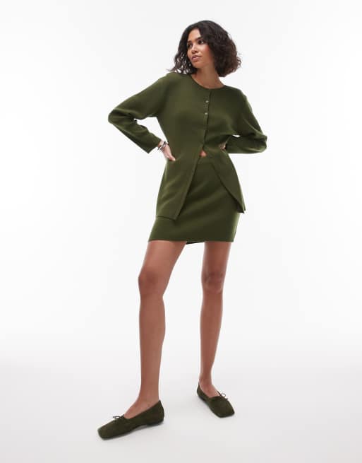 Topshop - Mini-jupe d'ensemble en maille compacte - Vert olive