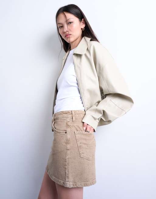 Topshop - Mini-jupe en jean - Beige délavé