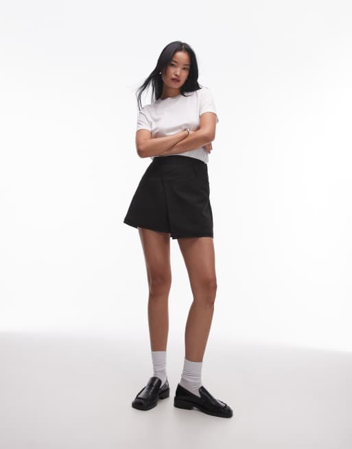 Topshop - Mini-jupe portefeuille ajustée - Noir