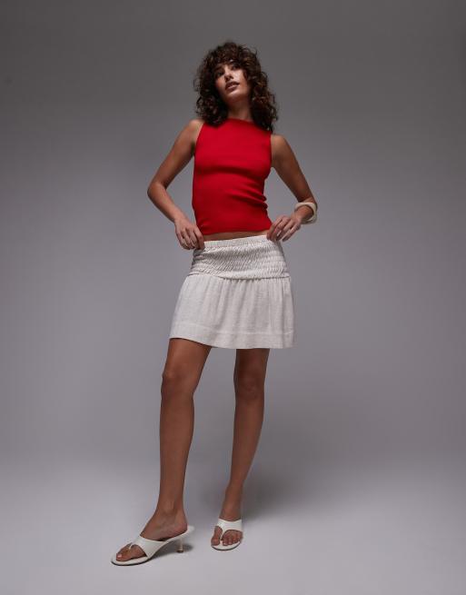 Topshop - Mini-jupe taille haute froncée sur les côtés en lin naturel