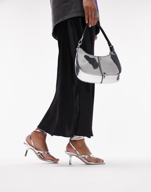 Topshop - Nancy - Sandales pointure large à talon mi-haut avec entredoigt et lanières - Croco argenté