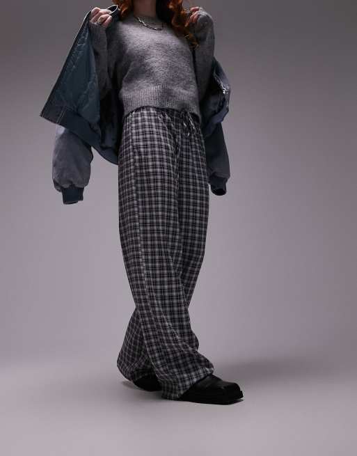Topshop - Pantalon ample en seersucker à carreaux - Bleu