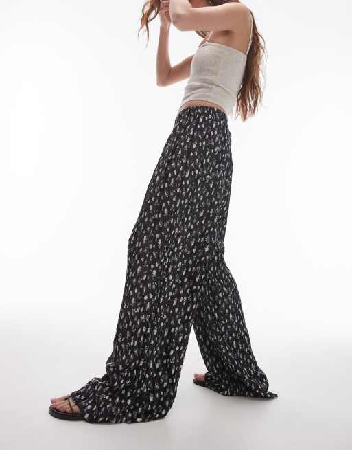 Topshop - Pantalon ample plissé à petites fleurs - Noir et blanc