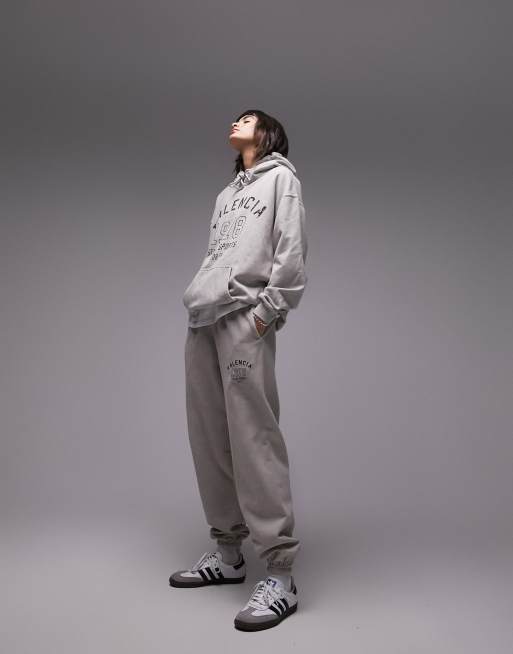 Topshop - Pantalon de jogging d'ensemble oversize avec imprimé Valencia - Taupe