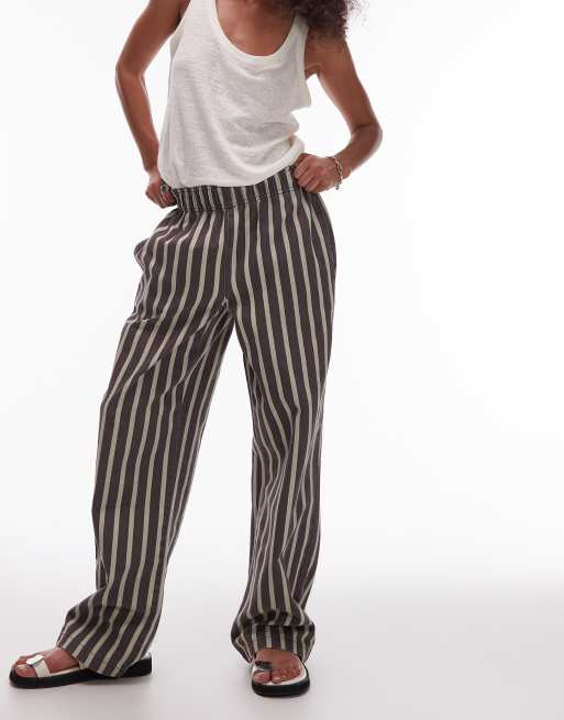 Topshop - Pantalon droit à enfiler à rayures larges - Vert et marron