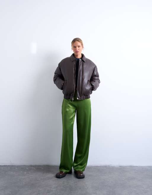 Topshop - Pantalon en satin à taille basse - Vert