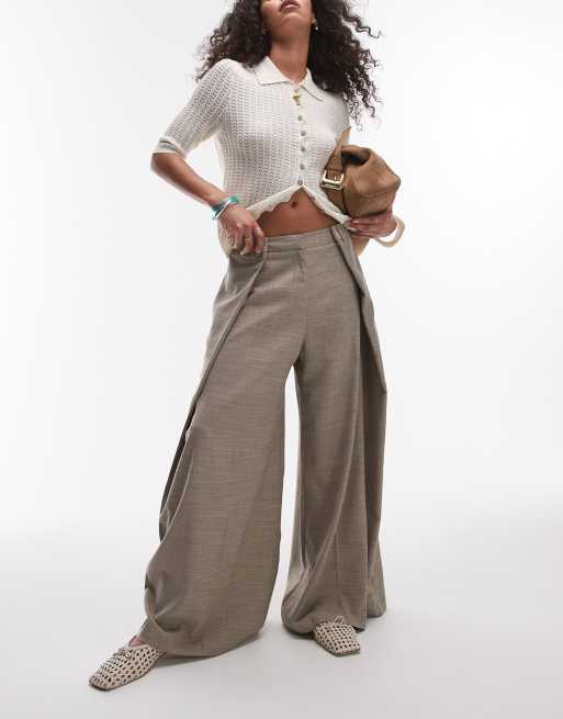 Topshop - Pantalon enveloppant et habillé ultra large de qualité supérieure - Taupe