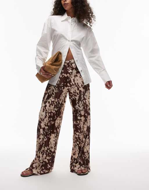 Topshop - Pantalon plissé à imprimé animal abstrait - Marron