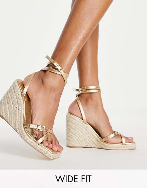 Topshop - Pointure large - Wilma - Espadrilles à semelle compensée haute - Doré
