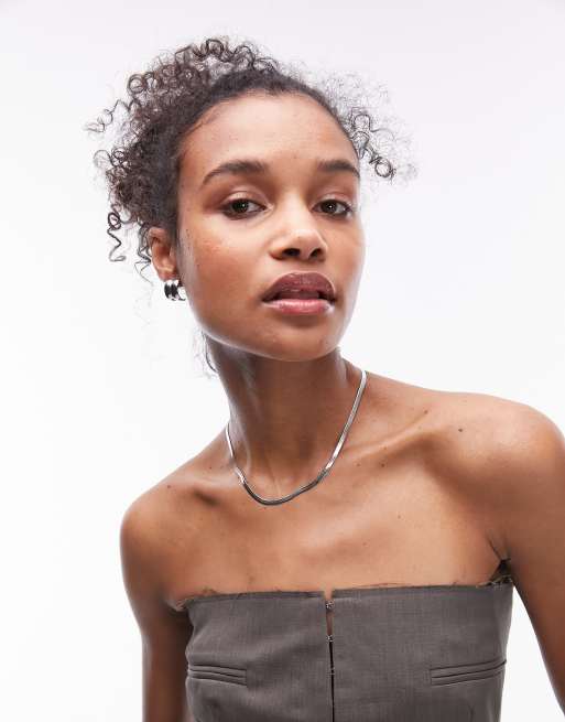 Topshop - Polly - Collier chaîne en maille serpent en acier inoxydable imperméable - Argenté
