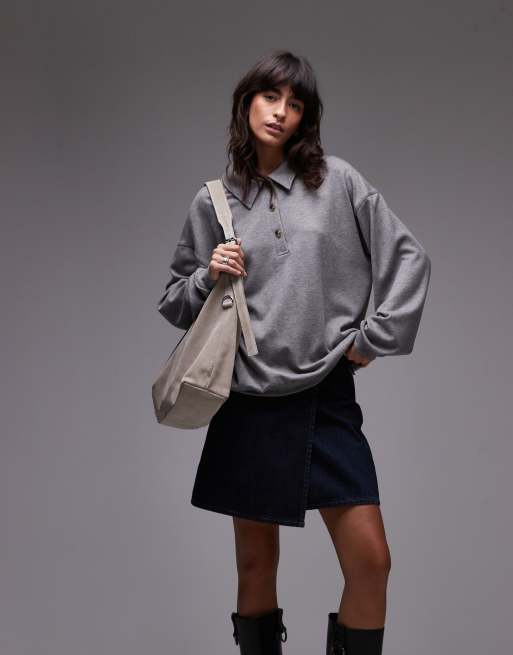 Topshop - Polo en tissu côtelé de qualité supérieure - Gris
