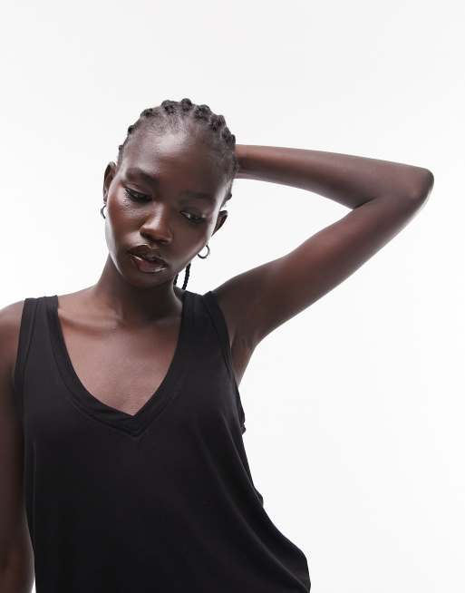 Topshop Premium - Débardeur basique ample à col V - Noir