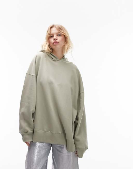 Topshop - Premium - Sweat à capuche oversize - Vert sauge