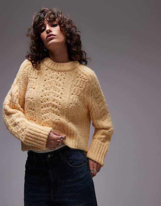 Topshop - Pull décontracté ras de cou en maille surpiquée - Babeurre
