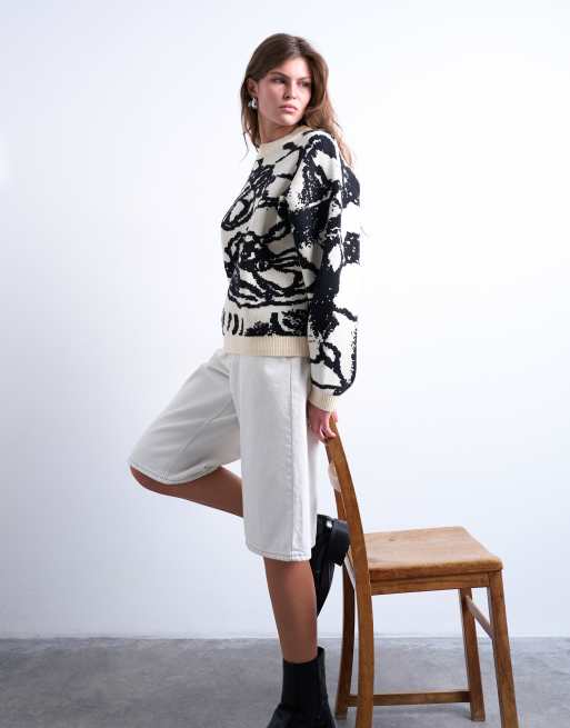 Topshop - Pull en maille jacquard épuré à imprimé fleuri abstrait - Noir et blanc