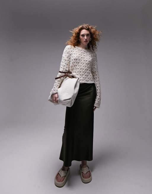 Topshop - Pull oversize en maille de fil ruban avec surpiqûres - Ivoire