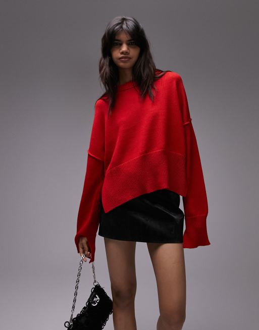 Topshop - Pull ras de cou à encoches fantaisie en maille - Rouge