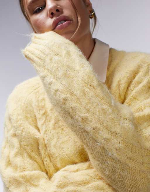 Topshop - Pull ras de cou en maille torsadée duveteuse - Babeurre