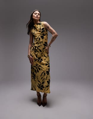 Topshop - Robe asymétrique avec dos nu - Imprimé feuille crème