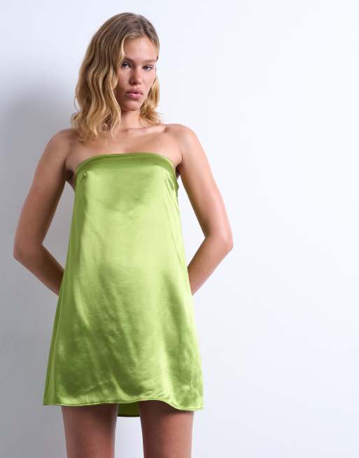 Topshop - Robe bandeau longue en satin - Vert