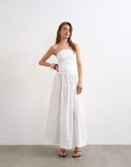 Topshop - Robe bandeau mi-longue froncée - Blanc