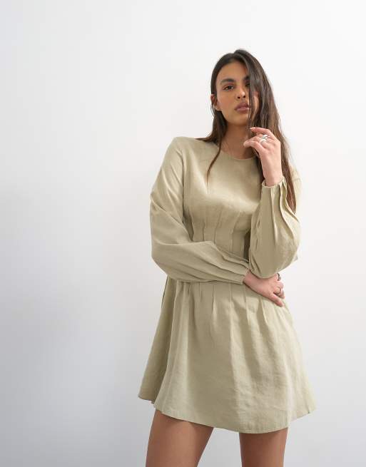 Topshop - Robe courte en cupro avec plis nervurés à la taille - Taupe