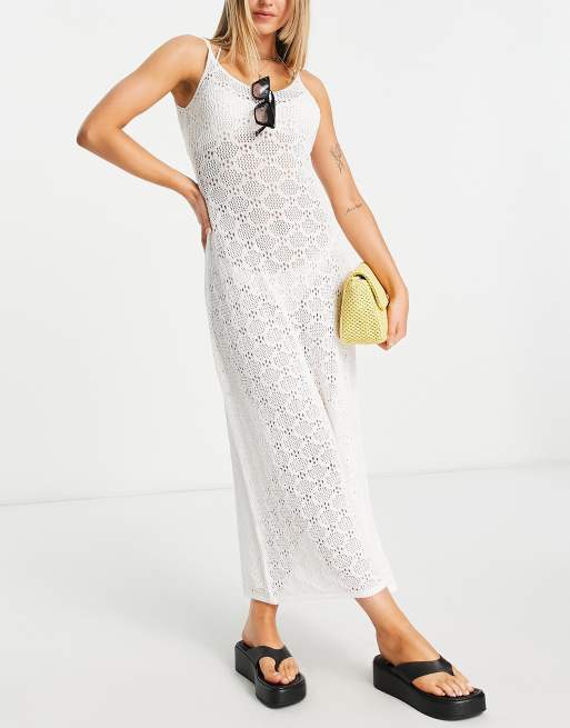 Topshop - Robe de plage longue en maille transparente - Blanc