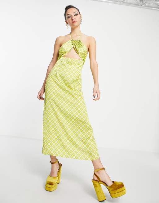 Topshop - Robe dos nu à découpe avec imprimé fleuri géométrique - Vert clair