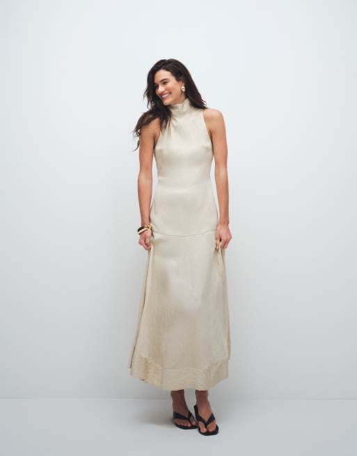 Topshop - Robe longue à rayures avec col montant et taille basse - Naturel