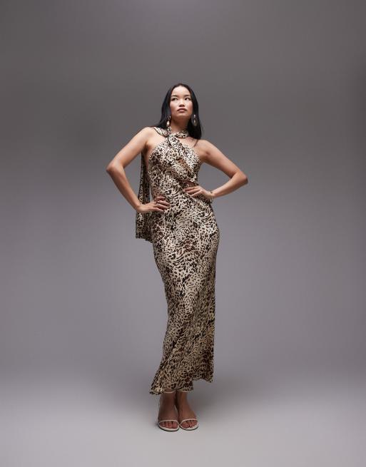 Topshop - Robe longue dos nu à imprimé animal abstrait et encolure nouée