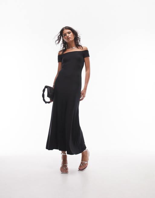 Topshop - Robe longue effet sculptante en tissu ultra doux avec encolure Bardot - Noir