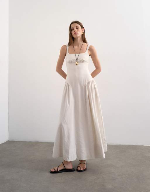 Topshop - Robe longue en lin mélangé à taille basse - Naturel