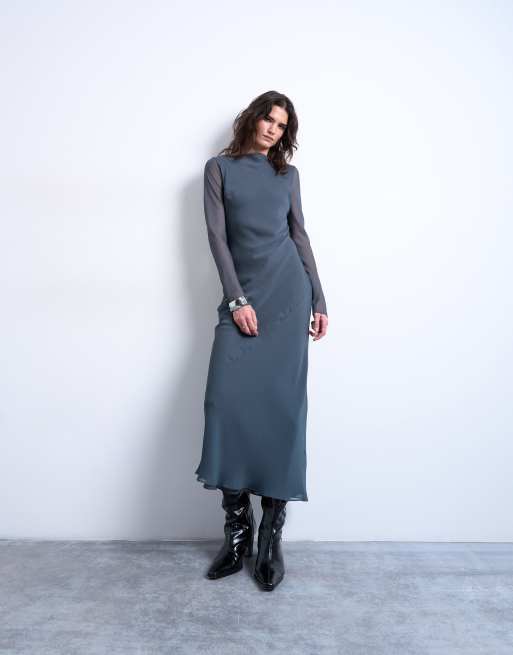 Topshop - Robe longue en mousseline à encolure bateau - Pétrole