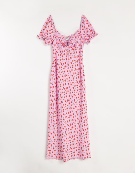 Topshop - Robe mi-longue à fleurs avec encolure Bardot - Rose