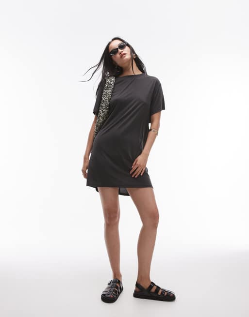 Topshop - Robe t-shirt courte torsadée dans le dos en cupro ultra doux de qualité supérieure - Noir