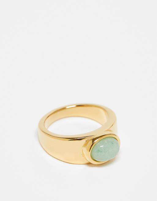 Topshop - Rylie - Bague en acier inoxydable avec pierre vert - Doré
