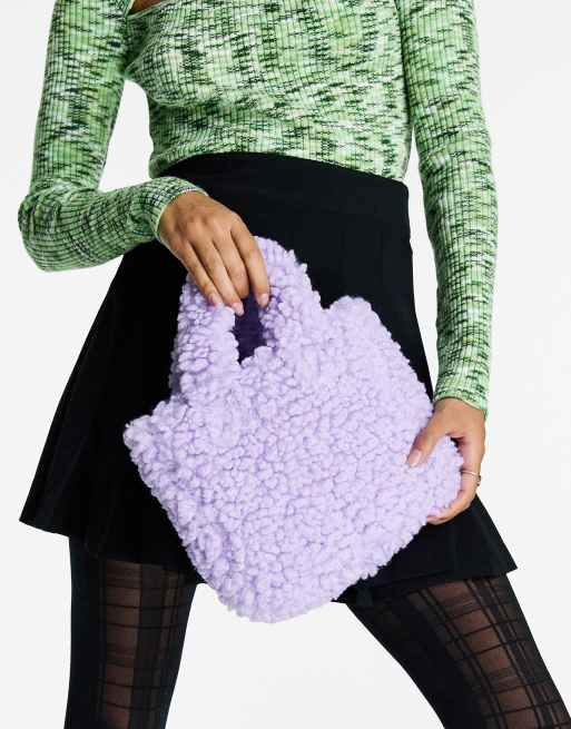 Topshop - Sac en imitation peau de mouton avec poignées supérieures - Lilas