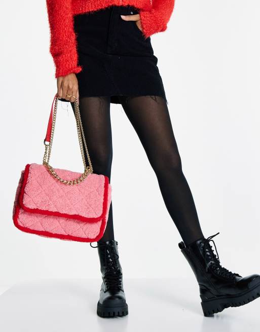 Topshop - Sac porté épaule imitation peau de mouton à bandoulière chaîne - Rose