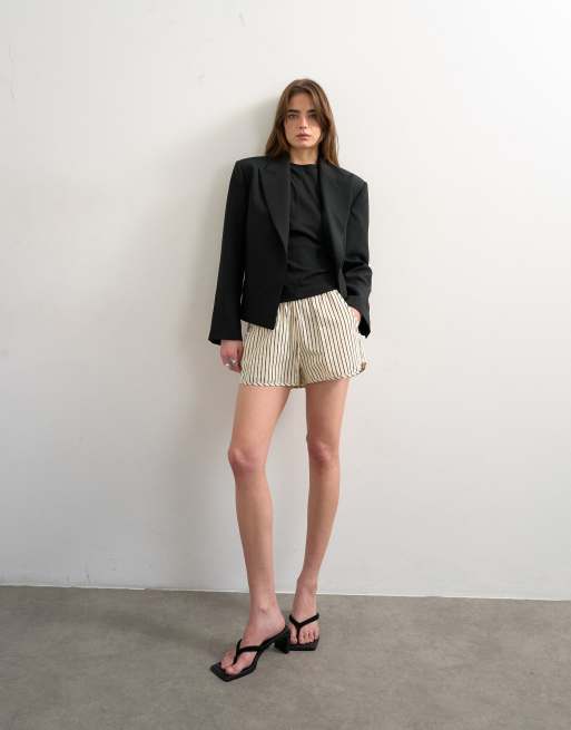Topshop - Short de course effet froissé à rayures - Noir et blanc